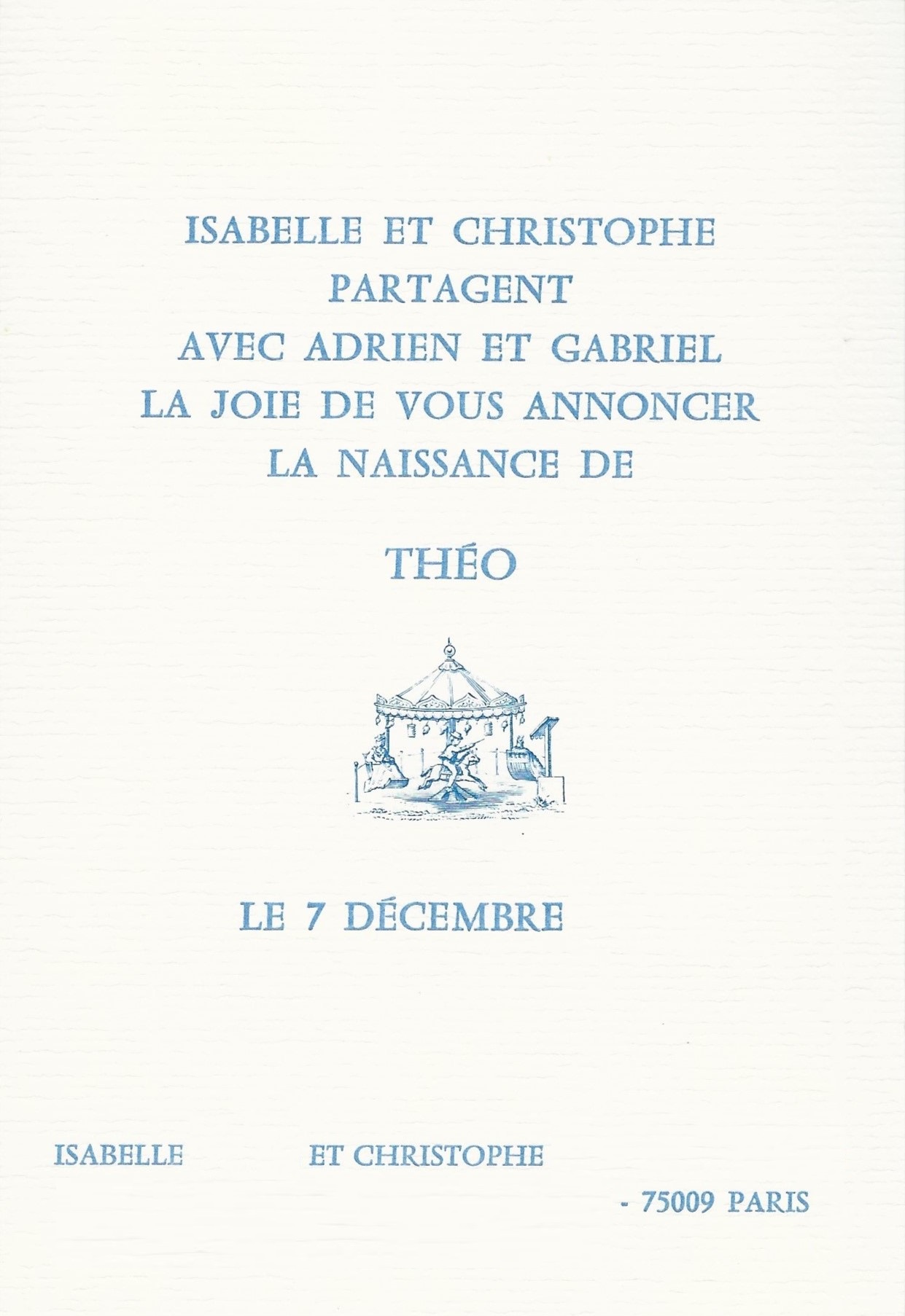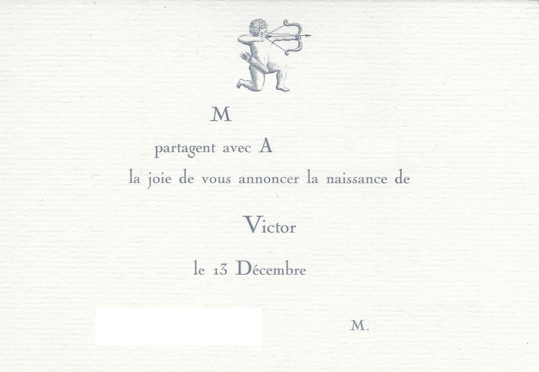 Faire part en vergé blanc ornées d’un timbrage « Cupidon ».